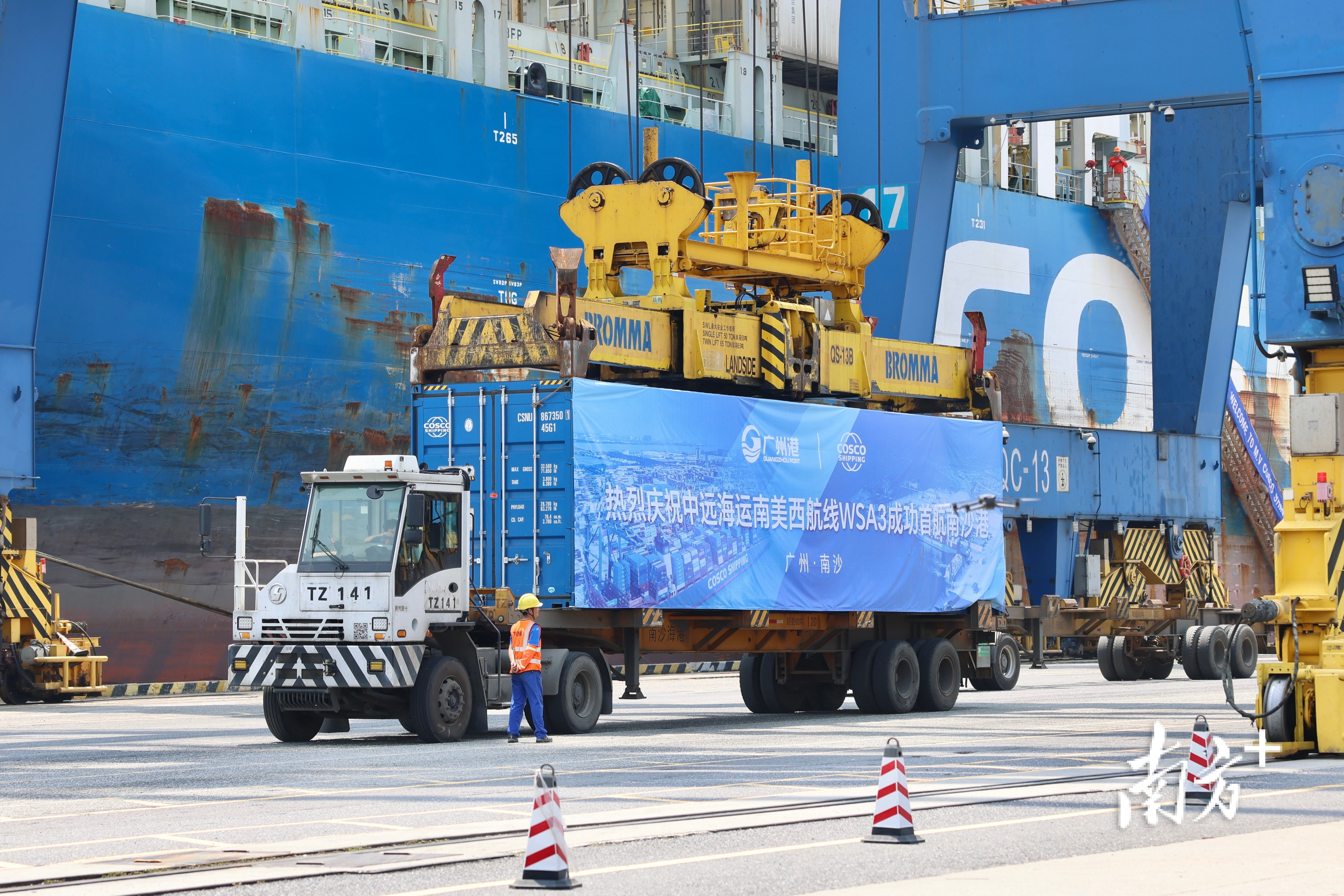 4月29日上午,“中远海运伏尔加”轮稳稳停靠广州港南沙二期码头,标志着WSA3航线正式开通——这是广州首条直航南美西岸的航线,串联起秘鲁钱凯港、墨西哥曼萨尼约港、智利圣安东尼奥港等拉美核心港口。